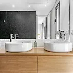 Tot de badkamerfaciliteiten van deze woning behoren ook een apart toilet en een douche. Er zijn een droger en handdoeken voor het comfort van de gasten.